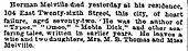 Melville died on the morning of September 28, 1891. His death certificate shows "cardiac dilation" as the cause.[139] He was interred in the Woodlawn Cemetery in The Bronx, New York City.[140]