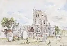 In the 1830s, a group of London investors, who recognised Herne Bay's potential as a seaside resort, built a wooden pier and a promenade on the town's seafront. This and the subsequent building of a railway station led to the rapid expansion of the town; between 1831 and 1841 the town's population grew from 1,876 to 3,041.[4] The London businessmen intended to rename the town St Augustine's, but the name was unpopular with residents and the name "Herne Bay" remained.[6] In 1833, an Act of Parliament established Herne Bay and Herne as separate towns.[7] Local landowner Sir Henry Oxenden donated a piece of ground for the site of the town's first church,[8] Christ Church, which was opened in 1834.[3] In 1837, Mrs Ann Thwaytes, a wealthy widow from London, donated around £4,000 to build a 75 feet (23 m) clock tower on the town's seafront.[8] It is believed to be the first freestanding, purpose-built clock tower in the world.[3]