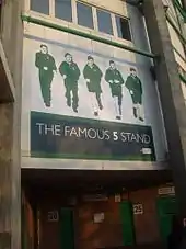 Hibs' most successful era was in the decade following the end of the Second World War, when it was "among the foremost clubs in Britain".[12] The forward line of Gordon Smith, Bobby Johnstone, Lawrie Reilly, Eddie Turnbull and Willie Ormond, collectively known as the Famous Five, was "regarded as the finest ever seen in Scottish football".[12] Each of the Famous Five scored more than 100 goals for Hibs.[12] The north stand at Easter Road is now named in their honour. Smith was signed by Hibs in 1941, while Ormond, Turnbull, Reilly and Johnstone were all signed during 1946. Of the five, only Ormond cost Hibs a transfer fee, £1200 from Stenhousemuir.[28] Reilly, Johnstone, Smith and Turnbull were all signed from youth or junior leagues.[12][29]