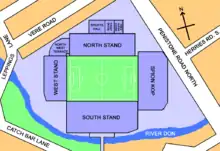 - New bridge across the River Don for entry to West Stand, with turnstiles on the other side of the river[38]