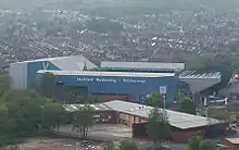 The stadium is located in the north west of the city roughly three miles from the city centre.[32] The area is mainly residential with a number of shops and a shopping centre located at nearby Hillsborough Corner. Views of the area can be enjoyed from hills located to the west.