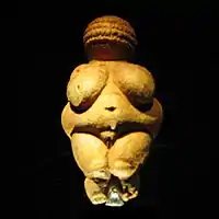 Among the oldest surviving examples of erotic depictions are Paleolithic cave paintings and carvings. Some of the more common images are of animals, hunting scenes and depictions of human genitalia. Nude human beings with exaggerated sexual characteristics are depicted in some Paleolithic paintings and artifacts (e.g. Venus figurines). Recently discovered cave art at Creswell Crags in England, thought to be more than 12,000 years old, includes some symbols that may be stylized versions of female genitalia. As there is no direct evidence of the use of these objects, it is speculated that they may have been used in religious rituals,[14] or for a more directly sexual purpose.[15]