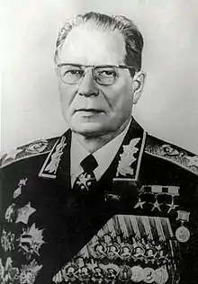 Brezhnev had, according to some of his closest advisors, been concerned for a very long time about the growing military expenditure in the 1960s. Advisers have recounted how Brezhnev came into conflict with several top-level military industrialists, the most notable being Marshal Andrei Grechko, the Minister of Defense. In the early 1970s, according to Anatoly Aleksandrov-Agentov, one of Brezhnev's closest advisers, Brezhnev attended a five-hour meeting to try to convince the Soviet military establishment to reduce military spending.[18] In the meeting an irritated Brezhnev asked why the Soviet Union should, in the words of Matthew Evangelista, "continue to exhaust" the economy if the country could not be promised a military parity with the West; the question was left unanswered.[19] When Grechko died in 1976, Dmitriy Ustinov took his place as Defense Minister. Ustinov, although a close associate and friend of Brezhnev, hindered any attempt made by Brezhnev to reduce national military expenditure. In his later years, Brezhnev lacked the will to reduce defense expenditure, due to his declining health.[20] According to the Soviet diplomat Georgy Arbatov, the military–industrial complex functioned as Brezhnev's power base within the Soviet hierarchy even if he tried to scale-down investments.[21]