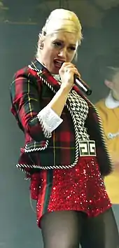 Stefani has performed "Hollaback Girl" on several occasions, including on two of her concert tours, in addition to several appearances on TV shows. During the majority of the 2005 Harajuku Lovers Tour, Stefani sang the single as an encore performance, where she wore a drumming costume and encouraged the audience to sing along with her.[69] However, in earlier shows, before the single's success, she sang it before tracks "Serious" and "Bubble Pop Electric".[70][71] During The Sweet Escape Tour, she performed the song in the middle of the show wearing sparkly red shorts and an argyle jacket atop a L.A.M.B. black and white shirt. She also sported a belt buckle featuring the "G" motif frequently used in The Sweet Escape.[72]