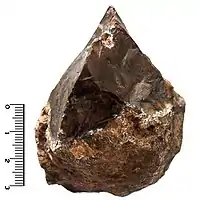 H. habilis is associated with the Early Stone Age Oldowan stone tool industry. Individuals likely used these tools primarily to butcher and skin animals and crush bones, but also sometimes to saw and scrape wood and cut soft plants. Knappers - individuals shaping stones - appear to have carefully selected lithic cores and knew that certain rocks would break in a specific way when struck hard enough and on the right spot, and they produced several different types, including choppers, polyhedrons, and discoids. Nonetheless, specific shapes were likely not thought of in advance, and probably stem from a lack of standardisation in producing such tools as well as the types of raw materials at the knappers' disposal.[4][53] For example, spheroids are common at Olduvai, which features an abundance of large and soft quartz and quartzite pieces, whereas Koobi Fora lacks spheroids and provides predominantly hard basalt lava rocks. Unlike the later Acheulean culture invented by H. ergaster / H. erectus, Oldowan technology does not require planning and foresight to manufacture, and thus does not indicate high cognition in Oldowan knappers, though it does require a degree of coordination and some knowledge of mechanics. Oldowan tools infrequently exhibit retouching and were probably discarded immediately after use most of the time.[53]