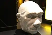 Homo heidelbergensis (also H. erectus heidelbergensis,[1] H. sapiens heidelbergensis[2]) is an extinct species or subspecies of archaic human which existed during the Middle Pleistocene. It was subsumed as a subspecies of H. erectus in 1950 as H. e. heidelbergensis, but towards the end of the century, it was more widely classified as its own species. It is debated whether or not to constrain H. heidelbergensis to only Europe or to also include African and Asian specimens, and this is further confounded by the type specimen (Mauer 1) being a jawbone, because jawbones feature few diagnostic traits and are generally missing among Middle Pleistocene specimens. Thus, it is debated if some of these specimens could be split off into their own species or a subspecies of H. erectus. Because the classification is so disputed, the Middle Pleistocene is often called the "muddle in the middle".
