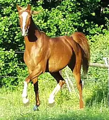 The so-called "natural" gaits, in increasing order of speed, are the walk, trot, canter, and gallop.[5] Some consider these as three gaits, with the canter a variation of the gallop. All four gaits are seen in wild horse populations. While other intermediate speed gaits may occur naturally to some horses, these four basic gaits occur in nature across almost all horse breeds.[1] In some animals the trot is replaced by the pace or an ambling gait.[5] Horses who possess an ambling gait are usually also able to trot.