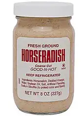 - "Nutrient content of prepared horseradish per 100 g". FoodData Central, US Department of Agriculture. 1 April 2018. Retrieved 9 August 2023.