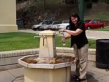 Drinking water is dispensed from several hot water jug fountains. The hot water is naturally potable. Two cold water springs (Happy Hollow and Whittington Springs) are treated using ozone filtration. Regulations prohibit private individuals from selling the park's waters.[22]