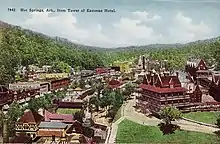 During the peak popularity of the hot springs, until the 1950s, the many patients staying for three weeks, six weeks, or longer were a large source of business for the numerous hotels, boarding houses, doctors, and drugstores. As the daily treatments required only an hour or two, the visitors' idle time created opportunities for other businesses in the town.[11]