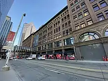 Until March 2020, the company was listed on the Toronto Stock Exchange under the symbol "HBC.TO" until Richard Baker and a group of shareholders took the company private.[14] HBC is, as of 2022, the majority owner of eCommerce companies Saks[15] and Saks Off 5th,[16] both established as separate operating companies in 2021.[16][17] HBC wholly owns SFA, the entity that operates Saks Fifth Avenue's physical locations;[18] O5, the operating company for Saks Off 5th stores;[19] The Bay, an eCommerce marketplace and Hudson's Bay, the operating company for Hudson's Bay's brick-and-mortar stores.[19][20]