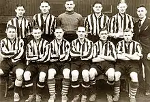 Hull City Association Football Club was founded in June 1904.[6][7] Previous attempts to found an association football club in Kingston upon Hull had proved difficult due to the popularity of rugby league in the city. By 1904, both Hull F.C. and Hull K.R. were already well-established sides with passionate local backing. The desire for a third team to represent the city in competitive sport was not particularly present at the time, but support would soon grow.[6] The club faced some initial disruptions after foundation, as they had been unable to apply for membership of the Football League for the 1904–05 season and instead played only in friendlies.[8] The first of these matches was a 2–2 draw with Notts County on 1 September 1904 with a strong crowd of 6,000 in attendance. These early matches were played at Hull F.C.'s home, the Boulevard.[3] The club's first competitive football match was in the FA Cup preliminary round, drawing 3–3 with Stockton on 17 September, but they were eliminated after losing the replay 4–1 on 22 September.[9]