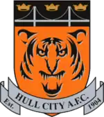 Hull City Association Football Club is a professional association football club based in Kingston upon Hull, East Riding of Yorkshire, England. They compete in the EFL Championship and play their home games at the MKM Stadium, after moving from Boothferry Park in 2002.[2] The club's traditional home colours are black and amber, often featuring in a striped design on the shirt, hence their nickname, the Tigers.[3] Hull also contest the Humber derby with both Grimsby Town and Scunthorpe United.[4][5]
