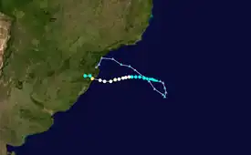 ![]() Catarina approaching Brazil as a Category 1 hurricane on 27 March | |