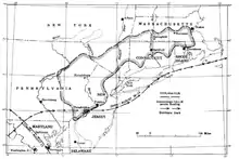 In Pennsylvania, washed-out rail lines prevented operation along the Delaware, Lackawanna and Western Railroad for several weeks,[17] and lines reopened after about two months.[21] The expense of reopening, and the loss of being closed, led to the railroad merging with the Erie Railroad to become the Erie Lackawanna Railway in 1960.[51] One stranded train along the line prompted a helicopter to rescue 235 people. Flooding along the Lehigh River destroyed 15 industrial plants, which left more than 15,000 people near Allentown, Pennsylvania without work temporarily. The mayor of Scranton declared a state of emergency due to the floods, ordering all businesses to close. United States Army soldiers provided water to residents after the town lost its water supply. Elsewhere, the Pennsylvania National Guard was on duty on streets in damaged towns,[12] including 50 to prevent looting in Upper Black Eddy, which was one of the hardest hit towns.[32] Helicopters assisted in discovering bodies at Camp Davis, where many deaths occurred during the storm. Statewide, thousands of people were left homeless.[30] In Stroudsburg, there was a food shortage, and officials enacted a curfew, after reports of looting.[52] In the same city, water was shipped in milk cartons to the flood victims, which later inspired a Federal Civil Defense Administration proposal to use water packaged in milk containers in the event of a nuclear attack.[53] The state government implemented a tax on cigarettes to help pay for storm damage, which lasted for about two years;[54] this was partially due to a lack of significant funding from the federal government.[55] Pennsylvania also enacted an increase in the gasoline tax that was later made permanent to pay for the Interstate Highway System.[56] The two taxes, each an increase of 1 penny, totaled $71 million, a part of which was set aside for future disasters.[57] The experience of the storm's aftermath provided the basis for the aftermath for Hurricane Agnes in 1972.[55] In New Jersey, Governor Robert B. Meyner declared the floods as at the time the state's worst natural disaster.[12]