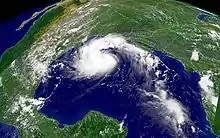 ![]() Erika as a tropical storm after its landfall on Mexico on August 16 | |