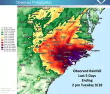 Florence's flooding in North Carolina and Virginia was compounded by earlier flooding during the summer that left the ground heavily saturated.[78]