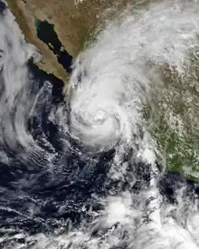 ![]() Hurricane Ismael off the coast of Baja California nearing landfall | |
