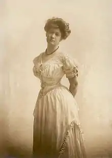 Music was always present at the Hogg household, and Ima began learning to play the piano at age three.[23] Although her younger brothers attended public school, Ima was enrolled at a private school and received private music lessons.[37] In 1899, she entered the University of Texas at Austin (UT),[38] where her favorite courses were German, Old English, and psychology.[39] She later remarked that "No freshman was ever more immature, more unprepared, more frightened than I."[38] She joined the female social club known as the Valentine Club, and helped to inaugurate the first sorority on the UT campus, Pi Beta Phi. After two years at the university, she moved to New York City to study piano and music theory at the National Conservatory of Music.[38] Although she was not on campus when the Pi Beta Phi chapter was installed in 1902, she became an alumna initiate in 1912 and a year later served as Vice President of the Houston Pi Beta Phi Alumnae Club.[40]