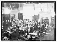 Beginning in the 1980s with Harry E. Claiborne, the Senate began using "Impeachment Trial Committees" pursuant to Senate Rule XI.[15] These committees presided over the evidentiary phase of the trials, hearing the evidence and supervising the examination and cross-examination of witnesses. The committees would then compile the evidentiary record and present it to the Senate; all senators would then have the opportunity to review the evidence before the chamber voted to convict or acquit. The purpose of the committees was to streamline impeachment trials, which otherwise would have taken up a great deal of the chamber's time. Defendants challenged the use of these committees, claiming them to be a violation of their fair trial rights as this did not meet the constitutional requirement for their cases to be "tried by the Senate". Several impeached judges, including District Court Judge Walter Nixon, sought court intervention in their impeachment proceedings on these grounds. In Nixon v. United States (1993),[18] the Supreme Court determined that the federal judiciary could not review such proceedings, as matters related to impeachment trials are political questions and could not be resolved in the courts.[19]