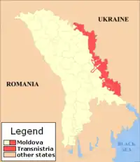 On 25 August, the day before Russia's recognition, Dmitry Medvedev met with President of Moldova Vladimir Voronin, where the Russian leader made it clear that Moscow is ready to solve the Transnistria conflict within the framework of the sovereignty of the Republic of Moldova with the maximum effort. Relations between Moldova and Transnistria worsened after Moldova refused to support the independence of Abkhazia and South Ossetia.[64]