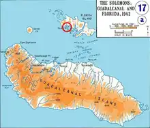 The failure of the Japanese to take Port Moresby and their defeat at Midway had the effect of leaving their base at Tulagi without effective protection from other Japanese bases. Tulagi was four hours flying time from Rabaul, the nearest large Japanese base.[46] On 7 August 1942, 11,000 U.S. Marines landed on Guadalcanal and 3,000 U.S. Marines landed on Tulagi and nearby islands.[47] The Japanese troops on Tulagi and nearby islands were outnumbered and killed almost to the last man in the Battle of Tulagi and Gavutu-Tanambogo while the U.S. Marines on Guadalcanal captured the airfield at Lunga Point without significant resistance.[48] Thus began the Guadalcanal campaign that resulted in a series of large, combined-arms battles between Allied and Japanese forces over the next six months which—along with the New Guinea campaign—would decide the fate of Japanese efforts to secure the southern frontier of their empire in the Pacific.[49][50]