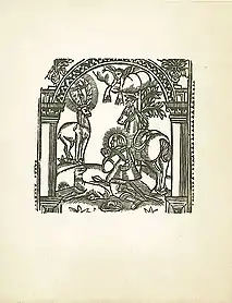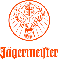 The label on Jägermeister bottles features a glowing Christian cross seen between the antlers of a stag.[16][17] This image is a reference to the two Christian patron saints of hunters, Saint Hubertus and Saint Eustace, both of whom converted to Christianity after experiencing a vision in which they saw a Christian cross between the antlers of a stag.[16][17][18][19]