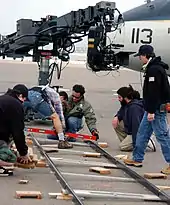 Initially, the producers of JAG did not receive any co-operation from the U.S. Department of Defense entertainment media liaison offices, due to sensitivity in light of all the accumulative negative publicity that had been generated from the Tailhook scandal and its aftermath.[27] However, the lack of co-operation from the military was not a show-stopper, as the JAG production team, by virtue of being a Paramount Pictures production, had access to the abundant stock footage from the studio's motion pictures, which included many films with military content, such as Top Gun, The Final Countdown, and The Hunt for Red October (and the two other Tom Clancy movie adaptations).[28]