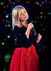 In 2009, Evancho competed in Las Vegas in the 15th annual USA World Showcase Talent Competition, where she finished in second place.[11][29][32] At the 2009 Kean Idol contest, she was again runner-up.[23][33][34] In other 2009 talent contests,[35] she won the Golden Ribby Award – WonderworldTV[31] and the Talent Quest TV Show (both in Massachusetts).[36][37] Also in 2009, she sang "Ave Maria" in composer and conductor Tim Janis's PBS television special "Celebrate America"[34][30] and performed in other concerts and TV shows with Janis,[38] who sought her out after seeing her on YouTube.[32][30] She made various singing appearances around Pennsylvania in 2009 and 2010, including singing The Star-Spangled Banner at the Pittsburgh Pirates baseball team's 2010 home opener.[28][39]