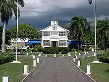 Jamaica House has been the location of the Office of the Prime Minister since 1972.[4] Prime ministers resided there from 1964 until 1980.[4] On 8 November 2022, Prime Minister Andrew Holness said in question time that his official residence was Jamaica House rather than Vale Royal, and that that Vale Royal was currently in disrepair and possible future uses would be considered after its restoration.[5]