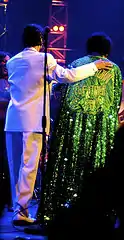 It was around this time as the musician's popularity increased that he acquired the nickname "Soul Brother No. 1", after failing to win the title "King of Soul" from Solomon Burke during a Chicago gig two years prior.[56] Brown's recordings during this period influenced musicians across the industry, most notably groups such as Sly and the Family Stone, Funkadelic, Charles Wright & the Watts 103rd Street Rhythm Band, Booker T. & the M.G.s as well as vocalists such as Edwin Starr, David Ruffin and Dennis Edwards from the Temptations, and Michael Jackson, who, throughout his career, cited Brown as his ultimate idol.[57]