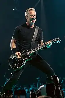 ![]() Hetfield playing live with Metallica in 2023 | |