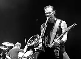 James Alan Hetfield (born August 3, 1963) is an American musician. He is the lead vocalist, rhythm guitarist, co-founder, and a primary songwriter of heavy metal band Metallica. He is mainly known for his intricate rhythm playing, but occasionally performs lead guitar duties and solos both live and in the studio. Hetfield co-founded Metallica in October 1981 after answering an advertisement by drummer Lars Ulrich in the Los Angeles newspaper The Recycler. Metallica has won nine Grammy Awards and released 11 studio albums, three live albums, four extended plays, and 24 singles. Hetfield is often regarded as one of the greatest heavy metal rhythm guitar players of all time.[1]