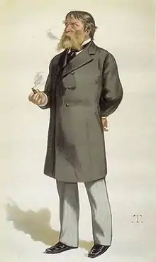 In January 1880, Lowell was informed of his appointment as Minister to England, his nomination made without his knowledge as far back as June 1879. He was granted a salary of $17,500 with about $3,500 for expenses.[93] While serving in this capacity, he addressed an importation of allegedly diseased cattle and made recommendations that predated the Pure Food and Drug Act.[94] Queen Victoria commented that she had never seen an ambassador who "created so much interest and won so much regard as Mr. Lowell".[95] Lowell held this role until the close of Chester A. Arthur's presidency in the spring of 1885, despite his wife's failing health. Lowell was already well known in England for his writing and, during his time there, befriended fellow author Henry James, who referred to him as "conspicuously American".[95] Lowell also befriended Leslie Stephen many years earlier and became the godfather to his daughter, future writer Virginia Woolf.[96] Lowell was popular enough that he was offered a professorship at Oxford after his recall by President Grover Cleveland, though the offer was declined.[97] He was elected as a member to the American Philosophical Society in 1883.[98]