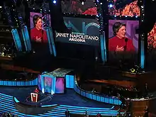 While serving as attorney general, she spoke at the 2000 Democratic National Convention just three weeks after having a mastectomy. Napolitano recalled that the pain was so unbearable that she could not stand up. "Work and family helped me focus on other things while I battled the cancer," says Napolitano. "I am very grateful for all the support I had from family, friends and Arizonans."[20]