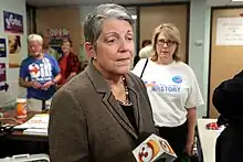 Janet Ann Napolitano (/nəpɒlɪˈtænoʊ/;[1] born November 29, 1957)[2] is an American politician, lawyer, and university administrator who served as the 21st governor of Arizona from 2003 to 2009 and third United States secretary of homeland security from 2009 to 2013, under President Barack Obama. She was named president of the University of California system in September 2013, and stepped down from that position on August 1, 2020 to join the faculty at the Goldman School of Public Policy.[3] She was elected to the American Philosophical Society in 2018.[4]