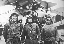 Six Kaga fighters were assigned to land bases near Shanghai and Nanking between 9 December 1937 and 15 January 1938. Nine fighters were temporarily based out of Nanking from 3 March through 4 April 1938. On 13 April 1938, Kaga launched eighteen D1A1s and three each of A4Ns and A5Ms on a strike against Canton, and they were met by two squadrons of Gloster Gladiators of the 5th Fighter Group led by Captain John Xinrui Huang and Captain Louie Yim-qun; Huang would score a triple kill in this battle against the Kaga raid, while Jirō Chōno (A5M) and Hatsuo Hidaka (A4N) would each claim double kills, including Chōno's shooting-down of Huang, who was injured bailing out.[41] Kaga's fighter group at this time included future aces Jirō Chōno, Osamu Kudō, Yoshio Fukui, Watari Handa, Masaichi Kondō, Hatsuo Hidaka, Kiichi Oda, Satoru Ono, and Chitoshi Isozaki.[42] The US Navy decrypted an IJN message which reportedly indicated that the attack on the Panay and other neutral ships in the Yangtze River had been knowingly and deliberately planned by an air officer on Kaga.[43]