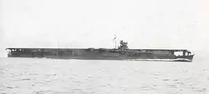 Following the Japanese ship-naming conventions for aircraft carriers, Sōryū was named "Blue (or Green) Dragon".[16] The ship was laid down at the Kure Naval Arsenal on 20 November 1934, launched on 23 December 1935 and commissioned on 29 December 1937.[5][17] She was assigned to the Second Carrier Division after commissioning. Her air group was initially intended to consist of eighteen Mitsubishi A5M ("Claude") monoplane fighters, twenty-seven Aichi D1A2 ("Susie") Type 96 dive bombers, and twelve Yokosuka B4Y ("Jean") Type 96 torpedo bombers, but the A5Ms were in short supply and Nakajima A4N1 biplanes were issued instead. On 25 April 1938, nine A4Ns, eighteen D1A2s, and nine B4Ys transferred to Nanjing to support forces advancing up the Yangtze River. The air group advanced with the successful Japanese offensive, despite the defense by the Chinese Air Force and the Soviet Volunteer Group; it was transferred to Wuhu in early June and then to Anqing. Little is known of its operations there, but its primary role during this time was air defense. One fighter pilot of the group was killed after he shot down a Chinese aircraft. Leaving a few fighters and their pilots behind to serve as the nucleus of a new fighter unit, the air group returned to Sōryū on 10 July. The ship supported operations over Canton in September, but her aircraft saw no aerial combat. She returned home in December and spent most of the next year and a half training.[18]