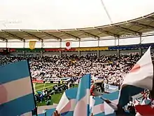 However, in its first attempt to qualify with professional players, Japan narrowly missed a ticket to the 1994 World Cup after drawing with Iraq in the final match of the qualification round, remembered by fans as the "Agony of Doha".[23] Japan's next tournament was a defence of their continental title at the 1996 Asian Cup. The team won all their games in the group stage but were eliminated in the quarter-finals after a 2–0 loss to Kuwait.[24]