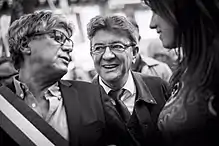 After joining the Socialist Party in 1976, he was successively elected a municipal councillor of Massy (1983) and general councillor of Essonne (1985). In 1986, he entered the Senate, to which he was reelected in 1995 and 2004.[1] He also served as Minister for Vocational Education between 2000 and 2002, under Minister of National Education Jack Lang, in the cohabitation government of Lionel Jospin. He was part of the radical-left wing of the Socialist Party until the Reims Congress of November 2008, when he left the party to found the Left Party with Marc Dolez, a member of the National Assembly.[2][3] Mélenchon first served as party president before becoming party co-president alongside Martine Billard, a position he held until 2014.[4] As co-president of the Left Party, he joined the electoral coalition of the Left Front before the 2009 European Parliament election; he was elected as a Member of the European Parliament (MEP) in the South-West France constituency and reelected in 2014. He became the Left Front's candidate in the 2012 presidential election, in which he came in fourth, receiving 11.1% of the first-round vote.