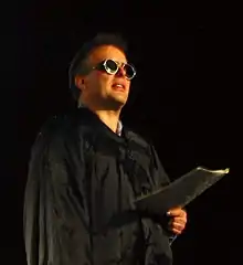 Initially active from 1979 to 1986, Dead Kennedys were known for rapid-fire music topped with Biafra's sardonic lyrics and biting social commentary, delivered in his "unique quiver of a voice".[1] When the band broke up in 1986, he took over the influential independent record label Alternative Tentacles, which he had founded in 1979 with Dead Kennedys bandmate East Bay Ray. In a 2000 lawsuit, upheld on appeal in 2003 by the California Supreme Court, Biafra was found liable for breach of contract, fraud, and malice in withholding a decade's worth of royalties from his former bandmates and ordered to pay over $200,000 in compensation and punitive damages; the band subsequently reformed without Biafra.[2] Although now focused primarily on spoken word performances, Biafra has continued as a musician in numerous collaborations. He has also occasionally appeared in cameo roles in films.