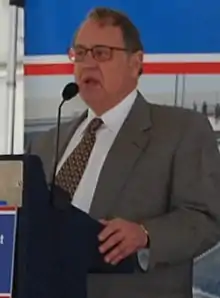 In the months prior to the purchase, Milwaukee businessman Marvin Fishman had been awarded a $16.2 million judgment against the Bulls.[22] Fishman had been illegally blocked from purchasing the team in 1972.[23] Reinsdorf purchased the team from an ownership group that included Lamar Hunt, George Steinbrenner, Walter Shorenstein, Jonathan Kovler, Lester Crown, Philip Klutznick, and the estate of Arthur Wirtz,[19] and he held a $9.2 million controlling interest in the team.[21] Reinsdorf's share of 56.8% of the team was purchased from Klutznick, Steinbrenner, Shorenstein and the estate of Wirtz.[24] His purchase ended an era in which the Bulls were managed by committee with decisions by conference call, verdicts by vote.[25] Reinsdorf acquired his majority interests on March 11, 1985, and Kovler sold his 7% stake in the team on January 29, 1986, bringing Reinsdorf's interest to 63%.[26][27] The following week Reinsdorf ousted Rod Thorn as general manager and replaced him with Jerry Krause.[28]