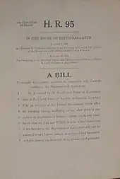In January 1937, Voorhis's first legislative initiative was to propose a dramatic increase in spending for the Works Progress Administration in order to increase employment.[23] While this effort was unsuccessful,[24] Congress, faced with an economic downturn the following year, increased WPA spending beyond the level which Voorhis had sought.[25] While the 75th Congress had in excess of 300 Democrats, many of them were conservative, and Voorhis emerged as a leader of a progressive caucus of some 50 representatives.[26] Voorhis advocated the purchase by the Federal Government of the stock in the Federal Reserve Banks, which was held by the member banks, as a way of financing government expenditures and briefly got President Roosevelt to support the measure until the President's advisers caused Roosevelt to change his mind.[27] Voorhis later allied with future House Banking Committee chairman Wright Patman to force Federal Reserve Banks to pay most of the interest they earned on federal securities to the U.S. Government, rather than to the bank stockholders.[28]