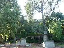 In 1972, Voorhis and his wife entered a retirement home in Claremont.[21] Nonetheless, he continued to work on a number of committees and advisory boards.[15] His activities ranged from the California Commission on Aging (appointed by Governor Jerry Brown) to working as a teacher's aide to Tom Hayden's Campaign for Economic Democracy.[69] Voorhis died at the retirement home from emphysema on September 11, 1984. In addition to his widow, he left two sons and a daughter.[21] Fellow Nixon opponent and former California governor Pat Brown eulogized him, saying, "He was a great man. Not many like him these days."[70] Voorhis is buried in Mountain View Cemetery in Altadena, California.[4] His papers are held by The Claremont Colleges Library Special Collections.[71]