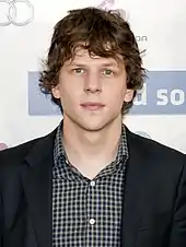 Eisenberg's first major box office success was a lead role in the horror-comedy Zombieland (2009). He starred opposite Woody Harrelson, Emma Stone, and Abigail Breslin as a group of survivors on a road trip through a post-zombie apocalypse America, and was a sleeper hit.[41] In 2010, he portrayed Facebook creator Mark Zuckerberg in the film The Social Network, for which he earned the Best Actor Award from the National Board of Review of Motion Pictures,[42] and nominations for Best Actor at the BAFTA Awards, Golden Globes, and Academy Awards but lost to Colin Firth for his performance of George VI in The King's Speech. According to the film's director, David Fincher, both he and screenwriter Aaron Sorkin knew Eisenberg was the one for the role as soon as they watched his audition tape, despite Eisenberg's own anxieties about his audition.[43] On November 22, 2010, Eisenberg was honored, along with Whoopi Goldberg, Joycelyn Engle, and Harvey Krueger, at the Children at Heart Celebrity Dinner Gala and Fantasy Auction, to benefit the children of the Chernobyl disaster. Steven Spielberg serves as chair of the event each year.[21]