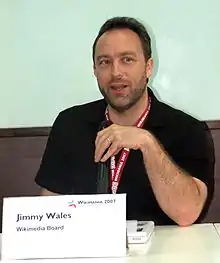 Jimmy Donal Wales (born August 7, 1966), also known on Wikipedia by the nickname Jimbo Wales, is an American–British[3] Internet entrepreneur, webmaster, and former financial trader. He is a co-founder of the online non-profit encyclopedia Wikipedia and the for-profit wiki hosting service Fandom (formerly Wikia). He has worked on other online projects, including Bomis, Nupedia, WikiTribune, and WT Social.