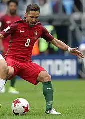 After six appearances out of a possible seven to help his nation win the European Championships for the first time ever,[64][65] Moutinho was also picked for the 2017 FIFA Confederations Cup squad by Fernando Santos.[66] In the latter competition, in the final group stage game in Saint Petersburg, he won his 100th cap by playing the full 90 minutes in the 4–0 defeat of New Zealand.[67][68]