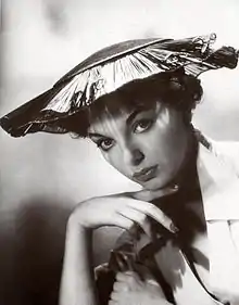 MGM borrowed Collins for The Opposite Sex (1956), a musical remake of The Women (1939) in which she was cast as the gold digging Crystal, the role played by Joan Crawford in the original. She then starred as a young nun in Sea Wife (1956), top-billed over co-star Richard Burton, followed by the all-star Island in the Sun (1957), which was a major box-office success. The film earned $5,550,000 worldwide, and finished as the sixth-highest-grossing film of 1957.[14] In 1957, she was top-billed over Jayne Mansfield in the film version of John Steinbeck's The Wayward Bus, which despite disappointing reviews[15] was nominated for the Golden Berlin Bear Award at the 7th Berlin International Film Festival.[16] She then starred opposite Robert Wagner in the espionage thriller Stopover Tokyo (1957), and was Gregory Peck's leading lady in the Western drama The Bravados (1958).
