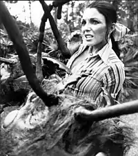 After two comedies, Alfie Darling (1975) and The Bawdy Adventures of Tom Jones (1976), Collins returned to the US to make what she now refers to as the nadir of her film career, the giant insect science-fiction piece Empire of the Ants (1977). In Italy she was the leading lady in the thriller Fearless (1978); in the US made the lighthearted Zero to Sixty (1978); and back in the UK appeared with Robert Mitchum in The Big Sleep. In 1978, Collins was catapulted back to major stardom in the UK when she starred in the film version of her sister Jackie Collins's racy novel The Stud. It was made for $600,000 and went on to gross over $20,000,000 internationally.[18] At the same time she published her autobiography, Past Imperfect, which went to number 1 in the bestseller charts. The Stud was so successful that a sequel, The Bitch (1979).[19] was hastily arranged. It too was a hit.