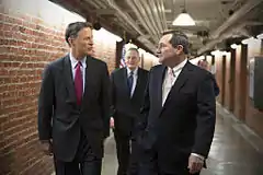 On January 3, 2013, Donnelly was sworn into the United States Senate in the 113th Congress by Vice President Joe Biden.[39] Donnelly was the first Democrat to hold his seat since Vance Hartke's defeat by Richard Lugar in 1977. The Lugar Center, a Washington, D.C.-based nonprofit Lugar founded in 2013, ranked Donnelly the fourth most bipartisan Senator in the first session of the 115th United States Congress as well as the most bipartisan Democrat in the Senate.[40][41]